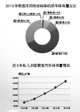 我國機動(dòng)車(chē)污染控制標準較低、起步較晚,全國平均機動(dòng)車(chē)單車(chē)污染物排放因子遠高于發(fā)達國家。2014年,我國機動(dòng)車(chē)保有量為2.64億輛,按排放標準分類(lèi),國1前標準汽車(chē)占7.8%,國1標準汽車(chē)占14.9%,國2標準汽車(chē)占15.7%,國3標準汽車(chē)占51.5%,國4及以上標準汽車(chē)占10.1%。其中,占保有量?jì)H7.8%的國1前標準汽車(chē)的污染物排放量占到了所有機動(dòng)車(chē)排放總量的35%以上,而占保有量61.6%的國3及以上標準汽車(chē)的排放量還不到總量的30%。據此估算,若所有機動(dòng)車(chē)均能達到國3及以上標準,那么汽車(chē)污染物排放量可下降50%左右。根據《2016年中國機動(dòng)車(chē)環(huán)境管理年報》的最新數據,2015年國3及以上標準機動(dòng)車(chē)保有量占比已達到83.5%,我國對機動(dòng)車(chē)排放標準的控制力度進(jìn)一步加大。